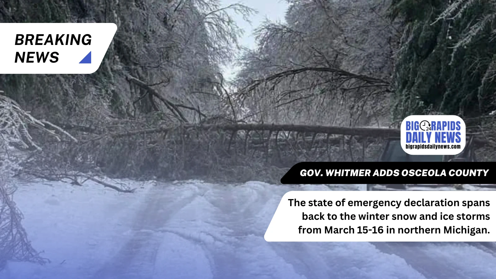 On Tuesday, Mar. 24, Gov. Gretchen Whitmer extended the state of emergency to Osceola County to assist with winter storm recovery efforts.