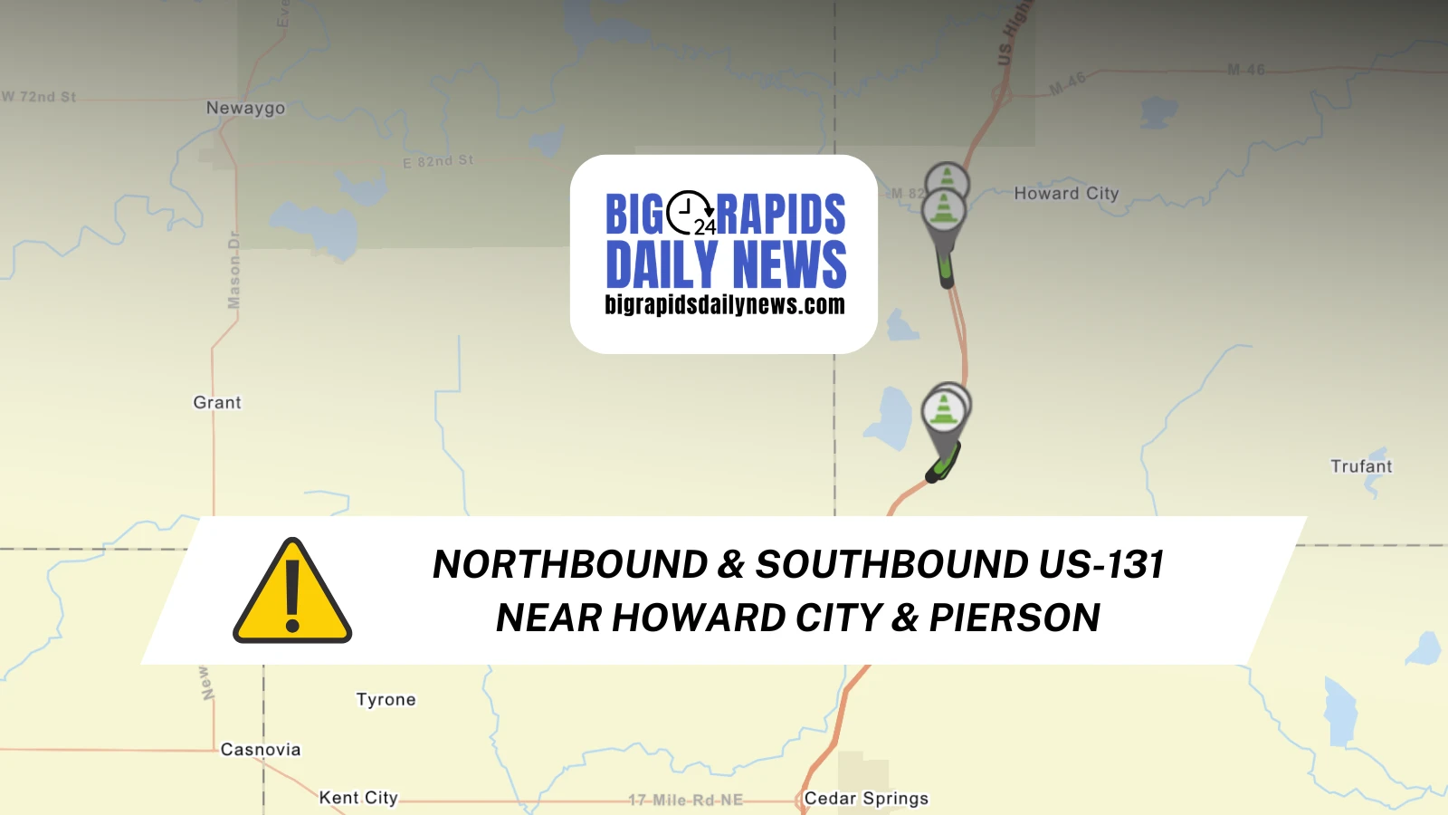 • Northbound US-131 from Mile Marker 112 to West Pierson Road near Howard City