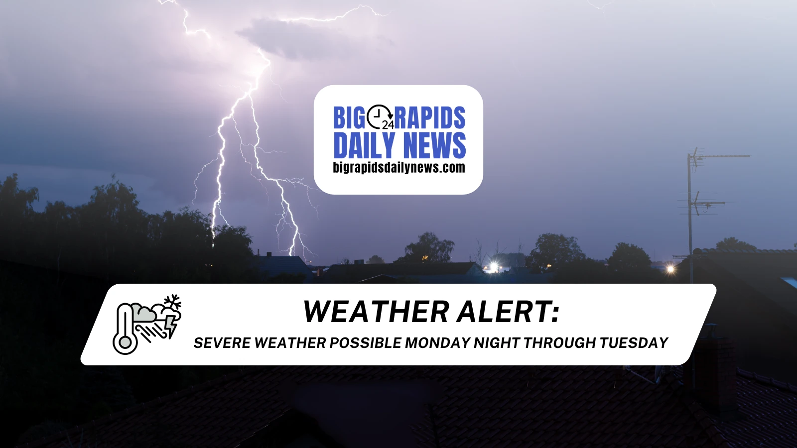 More severe weather will be possible Tuesday as another line of storms crosses Lake Michigan after 3 p.m. and may continue through the evening. Damaging winds and hail will be the primary hazards with this system along an approaching cold front, while a conditional tornado risk will exist depending on wind shear. The Storm Prediction Center has placed areas south of the M-46 corridor in the Lower Peninsula in a slight risk (level 2 of 5).