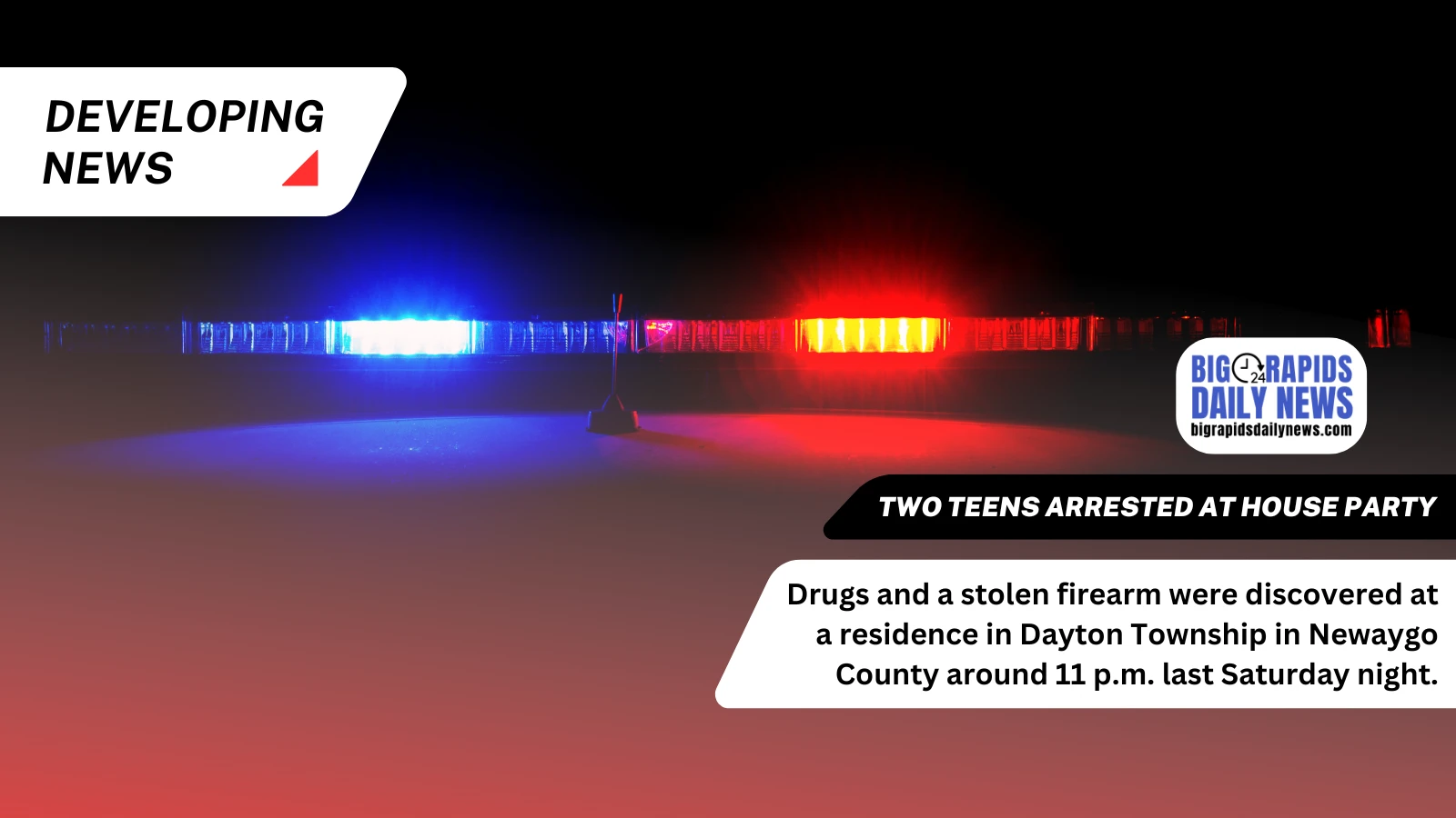 At approximately 11 p.m. on Saturday, Mar. 28, deputies from the Newaygo County Sheriff’s Office, along with officers from the Fremont Police Department, responded to a residence party where a group of 15-20 juviniles were present.